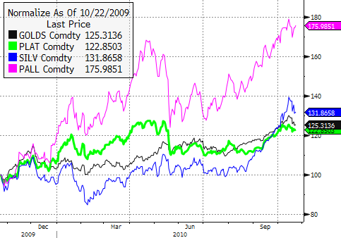 Besides, many silver, platinum and palladium investors want to work these metals' volatility, hoping to buy low and sell high on any given transaction. But going with a basket of metals just doesn't allow you to capitalize on the metals' underlying movements in the same way as playing the individual metals could.